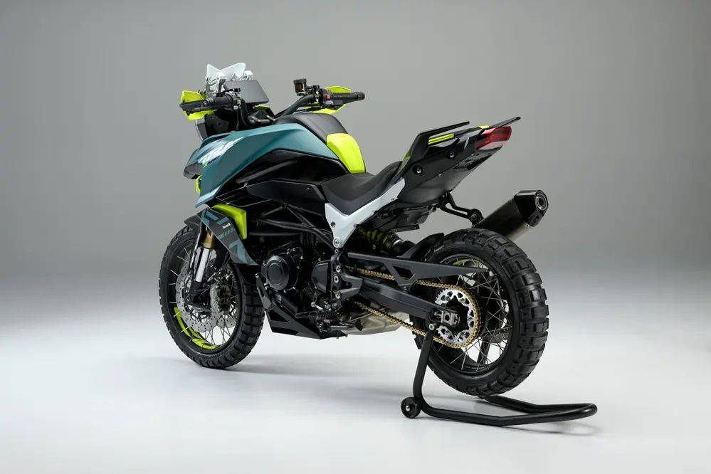 貝納利 TRK 902 Xplorer 的設(shè)計(jì)極具冒險(xiǎn)風(fēng)格,車身采用了亮眼的藍(lán)綠與熒光黃配色,并搭配流線型車殼與強(qiáng)化防護(hù)的底部護(hù)板,突顯其越野性能。 此外,其單座椅設(shè)計(jì)在原型車中取消了后座,并改為工具箱配置,進(jìn)一步彰顯其專注于單人騎乘的冒險(xiǎn)定位。