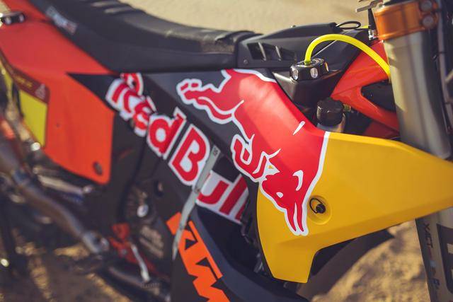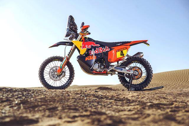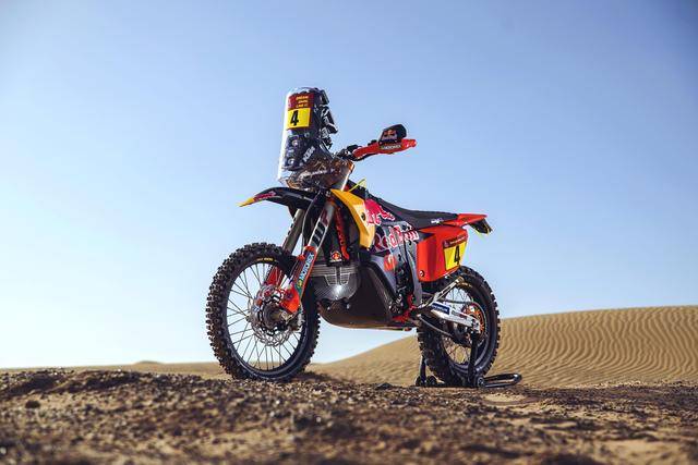 KTM 的拉力工廠(chǎng)賽車(chē)是 KTM 450 Rally。在過(guò)去 1979 - 2024 的四十六年達(dá)喀爾拉力賽里,KTM 在 1996 年首次進(jìn)入摩托車(chē)組的前三名,到 2001 年首次奪得摩托車(chē)組的冠軍之后,KTM 在接下來(lái)的日子里、開(kāi)啟了他們?cè)谶_(dá)喀爾拉力賽的輝煌旅程:2001 到 2024 年的二十四場(chǎng)摩托車(chē)組比賽里,KTM 奪得了二十場(chǎng)的冠軍,其中 KTM 450 Rally 贏(yíng)得了其中的十場(chǎng)、LC4 平臺(tái)贏(yíng)了九場(chǎng)、LC8 平臺(tái)贏(yíng)了一次。如果把同平臺(tái)的 GASGAS RX 450F 在 2022 年的勝利也包括在內(nèi)的話(huà),整個(gè) KTM 陣營(yíng)在達(dá)喀爾拉力賽累計(jì)獲得了二十一次冠軍,450 平臺(tái)占比超過(guò)一半、貢獻(xiàn)了十一次勝利。