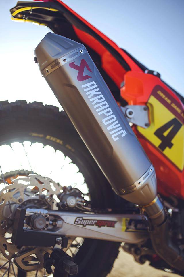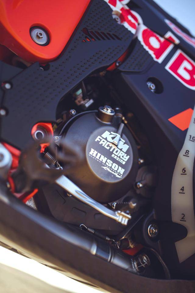 2025 規(guī)格的 KTM 450 Rally 工廠(chǎng)賽車(chē)沿用一副水冷四沖程單氣缸、SOHC 四氣閥型式的發(fā)動(dòng)機(jī),采用了經(jīng)過(guò)重新設(shè)計(jì)的、針對(duì)拉力賽特性的氣缸蓋鈦合金制的氣閥,經(jīng)過(guò)強(qiáng)化的離合器、以及特制的六檔變速齒輪箱;散熱系統(tǒng)采用了兩個(gè)獨(dú)立散熱水箱的設(shè)計(jì),提高了整體散熱效率的同時(shí)、也為復(fù)雜的比賽環(huán)境提供多一個(gè)保障:即使其中一個(gè)損壞、另外一個(gè)仍能繼續(xù)工作;而采用了輕量化結(jié)構(gòu)的 Akrapovic阿克拉波維奇排氣系統(tǒng)、經(jīng)過(guò)專(zhuān)門(mén)的匹配,可讓車(chē)輛的性能發(fā)揮至極限。