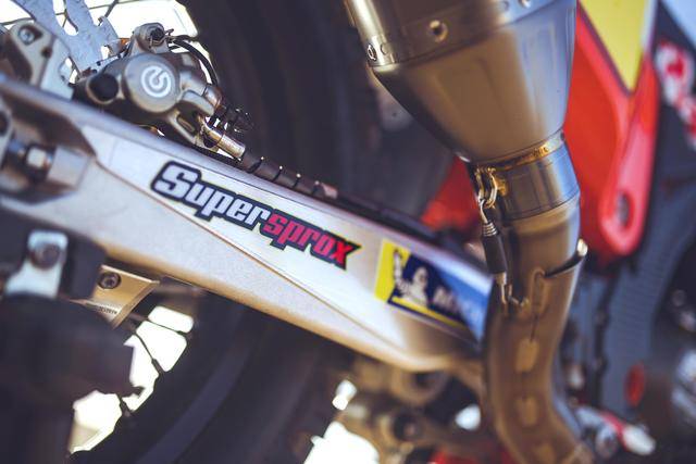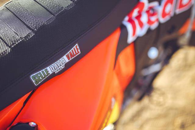 車(chē)體方面,采用一副專(zhuān)為拉力賽設(shè)計(jì)的鋼制車(chē)架,2025 規(guī)格賽車(chē)的車(chē)架、具有新的縱向和扭轉(zhuǎn)剛度,以提高路面反饋、能量吸收和直線(xiàn)加速時(shí)的穩(wěn)定性;WP 配套的賽車(chē)懸掛系統(tǒng);經(jīng)過(guò)重新設(shè)計(jì)的、更銳利的整流罩,配合新的水箱布局和拉力賽專(zhuān)用鞍座,為車(chē)手提供了更好的人體工程學(xué)和長(zhǎng)距離騎行的舒適度;車(chē)體前部有兩個(gè)獨(dú)立設(shè)計(jì)的、容量各為約 9 公升的油箱,作為尾樑(副車(chē)架)構(gòu)成組件之一的、是另有一個(gè)容量約為 16 公升的油箱,總的燃料攜帶量為 35 公升,三個(gè)油箱由兩個(gè)單獨(dú)的油泵負(fù)責(zé)控制,可各自獨(dú)立向車(chē)輛供油。