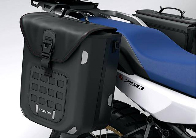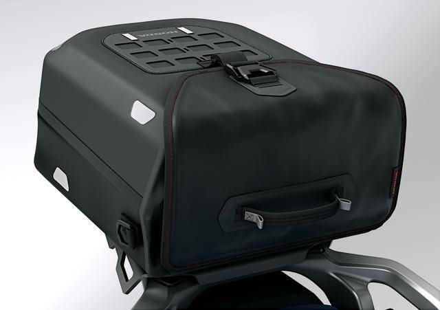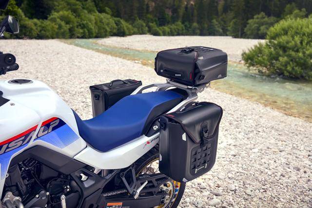 Touring Pack 旅行套件,包括了可快速拆卸的、防水的軟質(zhì)邊袋(左側(cè)邊袋的容量為 33 公升、右側(cè)邊袋的容量為 26 公升),鋁制的尾架,中央大腳架,額外的、可為電子設(shè)備充電的 12V 插座等;