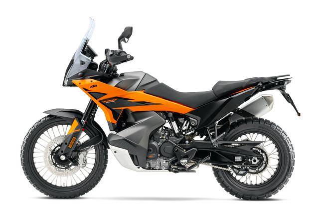 新的 2025 款 790 Adventure 系列沿用了現(xiàn)有的水冷四沖程直列兩氣缸、DOHC每氣閥四氣閥發(fā)動機,缸徑、行程保持為 88 mm x 65.7 mm,排氣量 799 cc,Bosch博世的電噴管理系統(tǒng)、口徑為 46 mm 的節(jié)氣閥,標配了 PASC 滑動式離合器、六檔的變速齒輪箱,最大動力輸出 70 kw(約 94 匹)。車體沿用了鋼制的承載式車架,數(shù)字式的儀表板,前 320 mm 雙碟、后 260 mm 單碟的制動系統(tǒng),前 21、后 18 英寸直徑的車輪;電子輔助控制系統(tǒng)方面,標配了可選的騎行模式、牽引力控制系統(tǒng)和彎道 ABS。