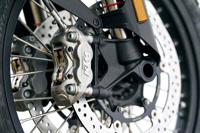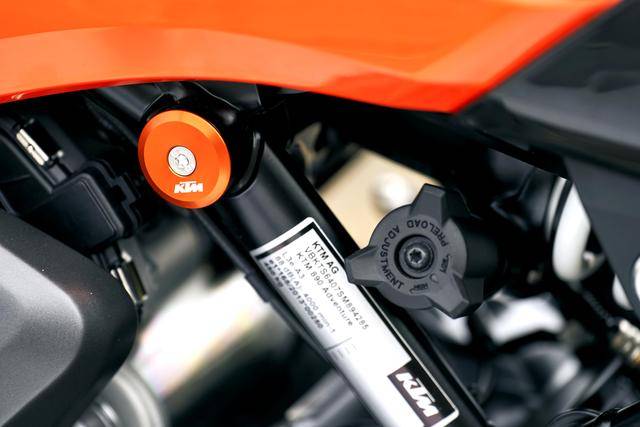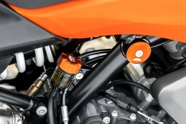 1、標準款的 790 Adventure,2025 版本最大的變化,是換裝了與 890 Adventure 相同的、WP 配套的 APEX 前后懸掛系統(tǒng),前后懸掛行程均為 200 mm;而 R 版則采用具有更佳越野性能的、同為 WP 配套的 XPLOR 倒立式前叉和 PDS 后減震,前后懸掛均具有更長的 245 mm 行程;