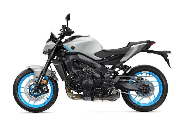 與現(xiàn)行的 2024 款相比,新的 2025 MT-09、MT-09 Y-AMT 運動街車,焦點的變化是增加了一個在整個 2025 MT 系列都 “ 必備 ” 的、名為 Ice Storm “ 暴風(fēng)雪 ” 的全新車體圖案/貼花,而淺灰色的車體主色調(diào)、粉藍(lán)色的前后車輪,則是這個新圖案/貼花的核心標(biāo)志。