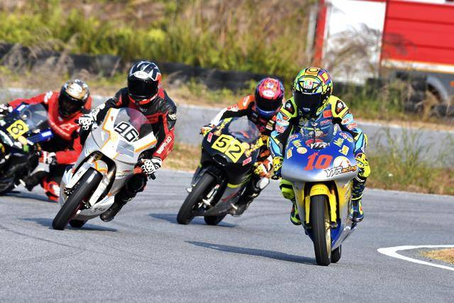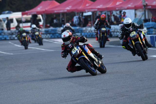 兩天的比賽里,首先開場(chǎng)的都是MiniGP150 青少年組的比賽。兩節(jié)的比賽里,29 號(hào)車的陸永源、81號(hào)車的張恩榤、136號(hào)車的黃霆諾是場(chǎng)內(nèi)的焦點(diǎn),三位車手在不同的競(jìng)賽環(huán)節(jié)里、也各自跑出了破56.365秒舊紀(jì)錄的個(gè)人最佳圈速;后面,2 號(hào)車的韓斐然、22 號(hào)車的李宇恒、33 號(hào)車的黎宇軒,也為觀眾們貢獻(xiàn)了緊張、刺激的追逐;而 36 號(hào)車的韓修宇、329 號(hào)車的樓雨墨,經(jīng)過(guò)了最初幾個(gè)競(jìng)賽環(huán)節(jié)的適應(yīng)之后,在最后的第二節(jié)比賽也展現(xiàn)出巨大的進(jìn)步和良好的節(jié)奏。