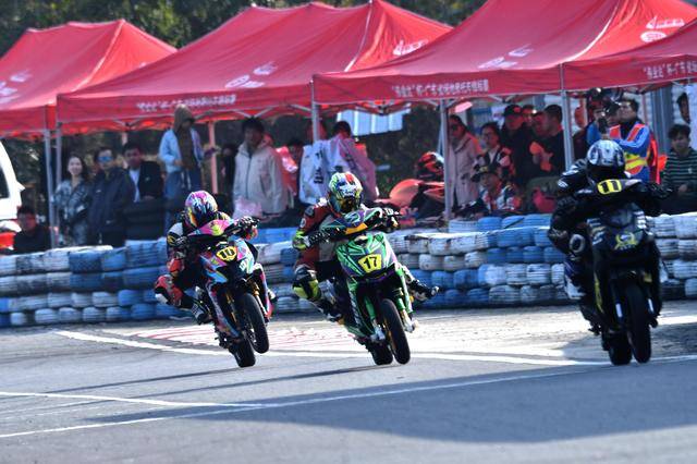 改裝街車單缸組、兩節(jié)比賽都是讓人眼花繚亂的大混戰(zhàn),83 號(hào)車的周峻熙、12 號(hào)車的蘇子弦、94 號(hào)車的鄭偉雄,三位車手在不同的競(jìng)賽環(huán)節(jié)里、都分別跑出了一個(gè)破55.274秒紀(jì)錄的圈速。最終,周峻熙兩戰(zhàn)全勝、奪得了冠軍,蘇子弦、97 號(hào)車的陳鏡波分別拿到了亞軍、季軍。