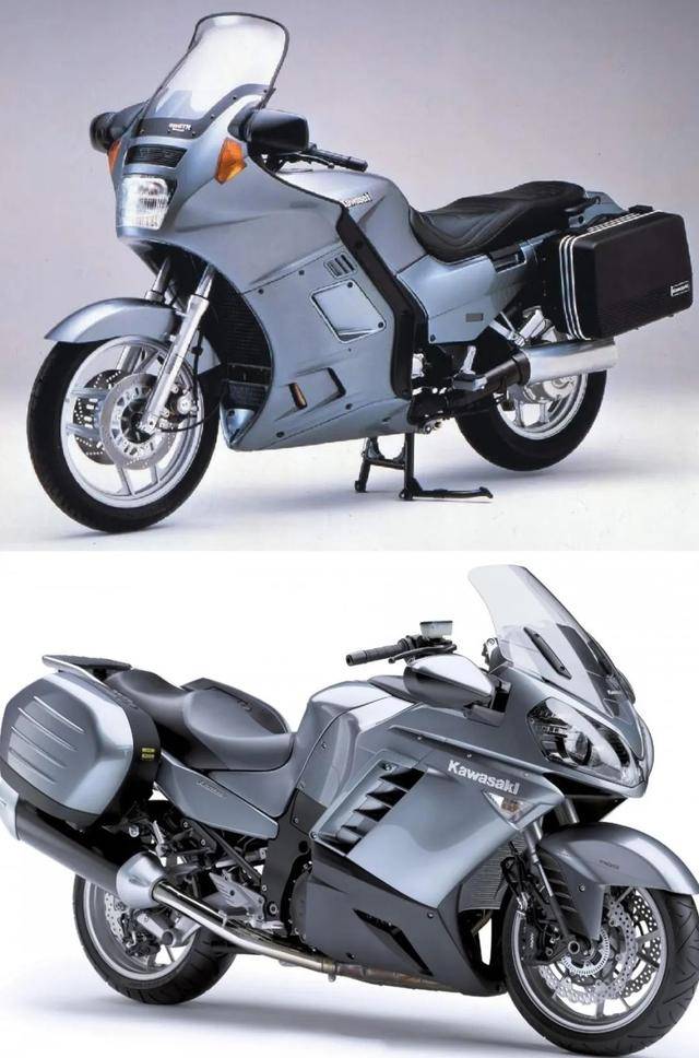 以此為名,1986年川崎以Ninja 1000R為基本平臺(tái),推出了運(yùn)動(dòng)旅行車Concours。川崎工程師針對(duì)運(yùn)動(dòng)旅行定位作了調(diào)整,比如以32mm口徑的化油器替代了36mm化油器,凸輪輪廓修改得比較緩和,目的是強(qiáng)化中低轉(zhuǎn)速范圍內(nèi)的扭矩輸出;驅(qū)動(dòng)方式改用傳動(dòng)軸來替代鏈條,長(zhǎng)壽命、免維護(hù),讓長(zhǎng)途旅行變得更省心舒適;車架作了深度修改,再加持預(yù)載可調(diào)的41mm前叉和空氣壓力輔助的Uni-Trak后減震器,在維持比較靈活的操控性能同時(shí),能更好地勝任旅行重任;安裝了高位風(fēng)擋和全包式導(dǎo)流罩,為騎手和乘客提供完善的防風(fēng)保護(hù);油箱容積很大,可以容納28L汽油,解除騎手夜以繼日長(zhǎng)途奔馳的續(xù)航之憂;匹配了旅行側(cè)箱,提供較大的儲(chǔ)物空間等。