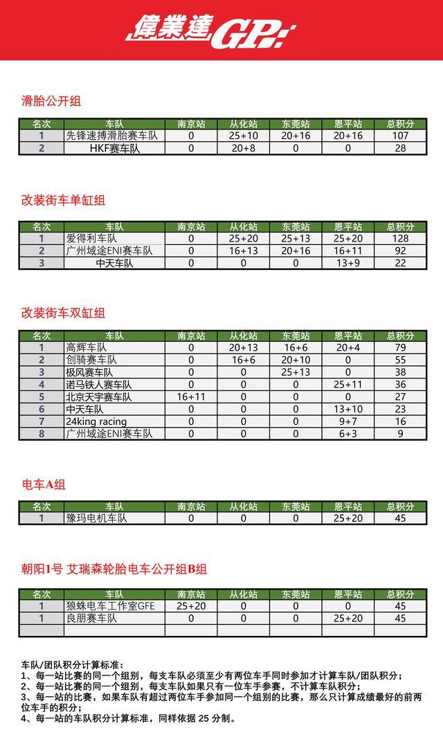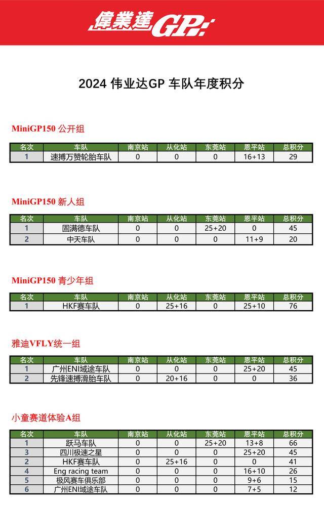 下面的圖片,偉業(yè)達(dá) GP 各競(jìng)賽組別 2024 團(tuán)隊(duì)年度積分榜: