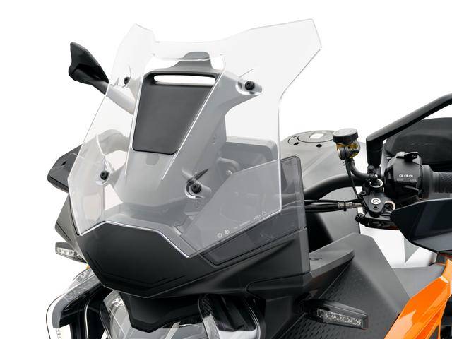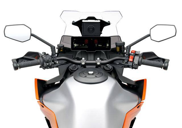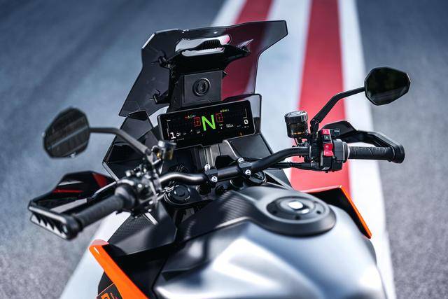 12、其他配置,包括 KTM 全新的、集成了離線地圖導(dǎo)航功能的 8.8 英寸 TFT 觸控式數(shù)字儀表板(H88),標(biāo)配了胎壓監(jiān)測系統(tǒng),輕量化的、鍛造鋁制成的上下三星,834 mm 的鞍座高度,213 公斤的整備重量,容量為 19.5 公升的油箱等。
