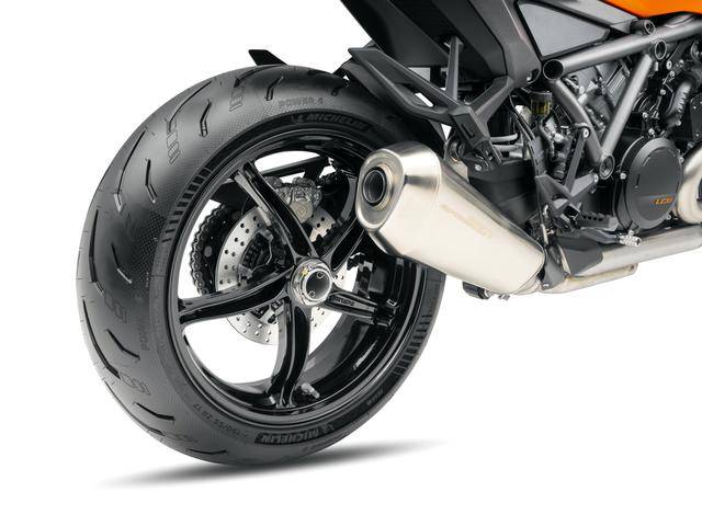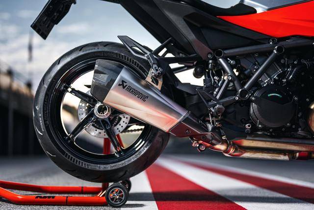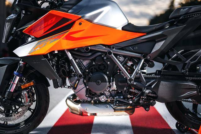 2、來自運動街車 1390 Super Duke R Evo 的鋼管式車架、后單搖臂,具有高剛性且低重心的設(shè)計,能夠提供一個更直接、更精確的轉(zhuǎn)向反饋;且車架、后搖臂和前叉、上下三星(前叉三角臺)之間的剛度經(jīng)過匹配,優(yōu)化前輪的反饋,即使是在極端的車身傾斜角度之下,都能夠提供良好的穩(wěn)定性;整個車架/底盤的開發(fā)、設(shè)定,是以改善街道騎行操控特性,同時考慮到在日常使用的舒適性、和偶爾的賽道體驗日使用,這兩者之間的平衡作為目標(biāo);