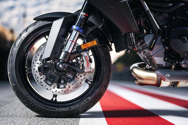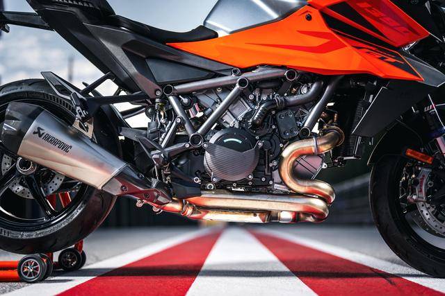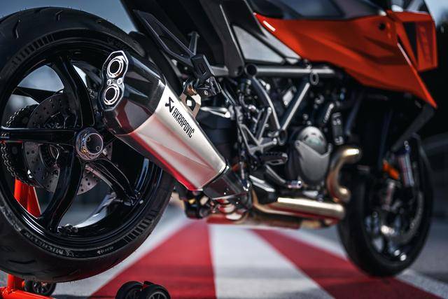 車體方面,沿用了來自街車版的 1390 Super Duke R Evo 的車架,新設(shè)計的外觀造型,新的、具有家族臉譜的 LED 前大燈,WP 配套的前后懸掛系統(tǒng),全新的大型數(shù)字式儀表板,Brembo布雷博配套的制動系統(tǒng)等。