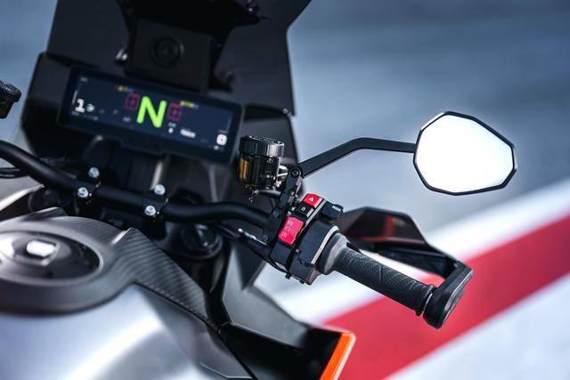 8、騎行電子輔助控制系統(tǒng)方面,配備了三個標(biāo)準(zhǔn)的可選騎行模式(Rain 雨天、Street 街道、Sport 運動)和全新的自定義模式,廠方額外提供兩個可選的自定義模式和賽道模式(需額外付費)。不同的騎行模式之下,預(yù)設(shè)了不同的牽引力控制、油門開度控制、前輪離地控制等項目的介入程度;配備了前置雷達(dá),為巡航控制、制動輔助、車距輔助等功能提供支持;