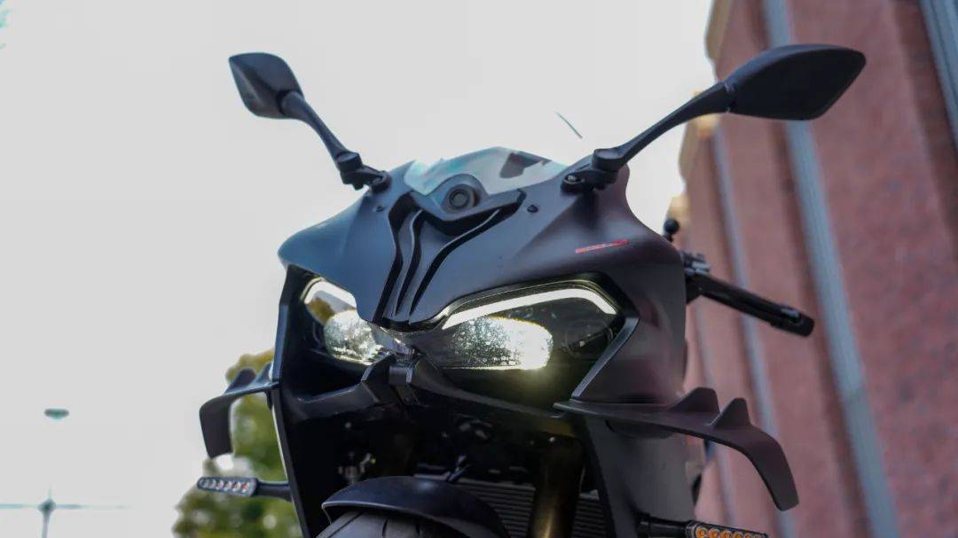 外觀及燈光儀表:賽600RS外觀的設(shè)計(jì)上傳承家族式外觀設(shè)計(jì),對(duì)于打造產(chǎn)品集群好處更多,極具個(gè)性的正臉設(shè)計(jì),配上飽滿(mǎn)流暢的車(chē)身線條,車(chē)頭燈延伸出的定風(fēng)翼,經(jīng)過(guò)賽事認(rèn)證,充分彰顯自家的實(shí)力。只是個(gè)人感覺(jué)如果采用轉(zhuǎn)向燈集成式的后視鏡,車(chē)頭會(huì)顯得更簡(jiǎn)潔,相信顏值會(huì)更上一層樓。車(chē)輛漆水有明顯進(jìn)步,披靡汽車(chē)級(jí),達(dá)到國(guó)產(chǎn)摩托的頂級(jí)水準(zhǔn),外部細(xì)節(jié)做工良好,206公斤整備質(zhì)量,比老款賽600下降了14公斤,輕量化進(jìn)步明顯。大燈采用LED4透鏡大燈,沖壓進(jìn)氣口設(shè)置在了兩個(gè)大燈的下方,由兩側(cè)管道進(jìn)入發(fā)動(dòng)機(jī)部分,而CBR650則沒(méi)有沖壓進(jìn)氣,外觀上這種布局的一致性更出色,視覺(jué)效果更優(yōu),同時(shí)風(fēng)擋下方保留了行車(chē)記錄儀預(yù)留孔位,方便后期改裝。尾燈部分采用倒立式“三叉戟”燈帶,燈源全部采用LED材質(zhì),對(duì)于后車(chē)警示效果滿(mǎn)分,配合鏤空式尾部造型,在滿(mǎn)足空氣動(dòng)力學(xué)的同時(shí),外觀設(shè)計(jì)表現(xiàn)優(yōu)異。儀表采用家族式的5寸TFT寬屏全彩儀表,具備手機(jī)投屏,胎壓監(jiān)測(cè),手機(jī)互聯(lián),車(chē)聯(lián)網(wǎng)等功能,這塊表也是目前仿賽級(jí)別中觀感較好的,顯示信息全面且直觀,配合轉(zhuǎn)速拉高后轉(zhuǎn)速顯示變紅更富激情。