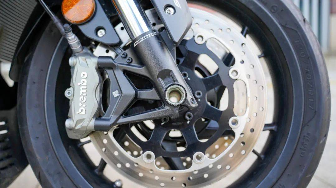 動(dòng)力部分:采用全新的680cc直列四缸水冷發(fā)動(dòng)機(jī),最大功率74.5kw(101.3Ps)/11500rpm,最大扭矩68N.m/9000rpm,標(biāo)配滑動(dòng)離合器,單向電子快排,提供標(biāo)準(zhǔn)和運(yùn)動(dòng)兩種模式。實(shí)測(cè)賽600RS的極限斷油轉(zhuǎn)速在12000rpm,這也是為什么相較于賽800排量減小的同時(shí),最大功率以及最大馬力沒(méi)有太大變化的緣由,可見(jiàn)征戰(zhàn)WSBK得到的賽事數(shù)據(jù)非常有用。動(dòng)力單元上可以看得出,相較于競(jìng)品本田CBR650最大功率56kW/9000rpm,最大扭矩 60N.m/8000rpm,足足大了25匹馬力,直接高出一個(gè)大級(jí)別,比無(wú)極RR660的74kW/11500rpm,64N.m/10000rpm也是略勝一籌。動(dòng)力儲(chǔ)備充沛,零百加速3.46秒,這是媲美超跑級(jí)別的加速,市區(qū)通勤和下賽道都足夠。三車(chē)中本田CBR650與無(wú)極660仍然是傳統(tǒng)的四缸出力特性,在5000rpm以下會(huì)有一定的出力疲軟,隨著轉(zhuǎn)速不斷升高,會(huì)有更多的駕駛激情,而賽600RS的調(diào)教則更為有趣,中低轉(zhuǎn)明顯更為暴躁,油門(mén)的響應(yīng)積極,動(dòng)力從低轉(zhuǎn)到中高轉(zhuǎn)速,延綿不絕,就玩樂(lè)性賽600RS更富有樂(lè)趣。避震器:依然是超高規(guī)格的馬祖奇全家桶,前41mm倒立式前減震,支持預(yù)載、回彈阻尼調(diào)節(jié),雙可調(diào)的中置后減震,也支持預(yù)載阻尼調(diào)節(jié),尤其后減震的預(yù)載調(diào)節(jié),有伸出來(lái)的單獨(dú)旋鈕,非常方便,在跑山以及賽道使用場(chǎng)景下,可以快速進(jìn)行避震器的調(diào)節(jié),相當(dāng)?shù)暮糜谩?/span>相較于本田CBR650采用showa倒置不可調(diào)避震器,以及RR660上的渝安不可調(diào)避震器,QJMOTOR的配置顯然高了不止一截,能夠給用戶(hù)更好的使用體驗(yàn)。制動(dòng)規(guī)格:前320mm雙碟盤(pán)由SUNSTAR提供,搭配Brembo的徑向四活塞剎車(chē)卡鉗和Brembo直推上泵;后260mm單碟剎,搭配Brembo雙活塞剎車(chē)卡鉗,依然是業(yè)內(nèi)頂級(jí)配置,標(biāo)配可關(guān)閉的TCS和雙通道ABS。相較競(jìng)品,本田CBR650所采用前后雙碟NISSIN制動(dòng)卡鉗,無(wú)極RR660s采用前Brembo雙碟輻射卡鉗,后Nissin卡鉗,賽600RS的剎車(chē)配置堪稱(chēng)殘暴,這個(gè)配置放眼同級(jí)是妥妥的頂流水準(zhǔn),38999的價(jià)格給到最頂級(jí)的配置,這也是QJMOTO的實(shí)力體現(xiàn)。輪胎配備的是SUPERMAXX SPORTMA-SP半熱熔輪胎,規(guī)格為前120/70ZR17,后180/55ZR17,很有跑車(chē)范兒,同時(shí)抓地表現(xiàn)也是一流水準(zhǔn),日常使用的場(chǎng)景下,抓地表現(xiàn)出色,這點(diǎn)咱們后續(xù)動(dòng)態(tài)篇再說(shuō)。油箱容積16L,按照我們測(cè)試過(guò)的賽800的油耗水準(zhǔn),可以預(yù)估到賽600RS的綜合續(xù)航能達(dá)到300km左右,按照一臺(tái)跑車(chē)的標(biāo)準(zhǔn)來(lái)看符合要求。