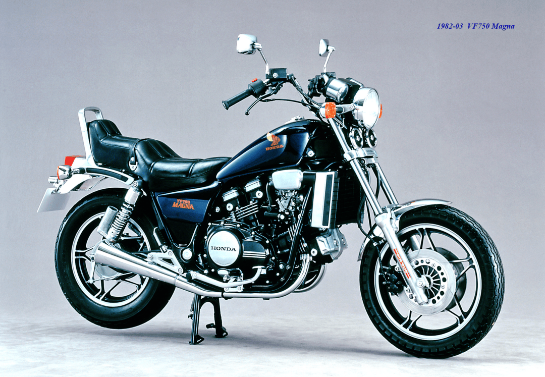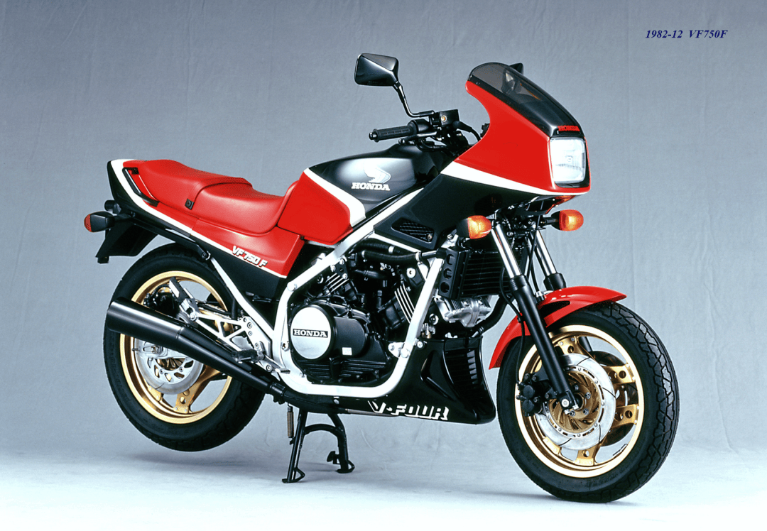 Honda 的第一款搭載 V4 發(fā)動機(jī)的量產(chǎn)車型,是 1982 年三月首次公開的 VF750 系列,該系列包括兩個車型:街車風(fēng)格的 VF750S Sabre 和巡航/太子車風(fēng)格的 VF750C Magna;隨后到了該年的十二月,推出了街跑車風(fēng)格(帶車頭小型整流罩的街車款)的 VF750F、以及主要面向日本本土市場的 VF400F;次年的 1983 開始,面向歐美市場的不同排氣量版本開始陸續(xù)面世,500、700、1000、1100,Honda 自此開啟了他們在 V4 領(lǐng)域里的狂奔之路。