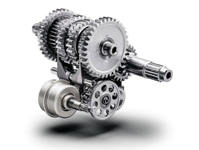 3、Evo 版標(biāo)配了 AMT 手自一體變速齒輪箱,該系統(tǒng)允許騎士在 M 手動(dòng)檔模式之下、以手動(dòng)換檔的模式(毋須操作離合器拉桿)進(jìn)行操作,或者是在 A 模式的全自動(dòng)變速器之間進(jìn)行選擇。與傳統(tǒng)的摩托車變速箱設(shè)置不同,Evo 版的這個(gè) AMT 系統(tǒng)采用了 P - N - 1 - 2 - 3 - 4 - 5 - 6 的檔位序列,其中 P 意為駐車檔。變速箱通過 ECU 感應(yīng)、對(duì)變速器控制單元發(fā)出指令去完成電子換檔的控制,此外,AMT 也允許車手在手動(dòng)換檔模式下控制變速箱,騎士可以選擇通過使用發(fā)動(dòng)機(jī)左側(cè)的傳統(tǒng)腳踏變速桿、左側(cè)開關(guān)盒上的手指撥片進(jìn)行換檔操作;