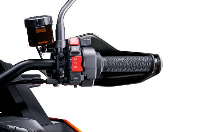 8、采用 8 英寸縱向安裝的 TFT 全彩色數(shù)字式儀表板,觸控屏、防反射、防指紋和防眩光的粘合屏幕設(shè)計(jì)。此外,車把兩端的開關(guān)采用了更直觀的立方體設(shè)計(jì);