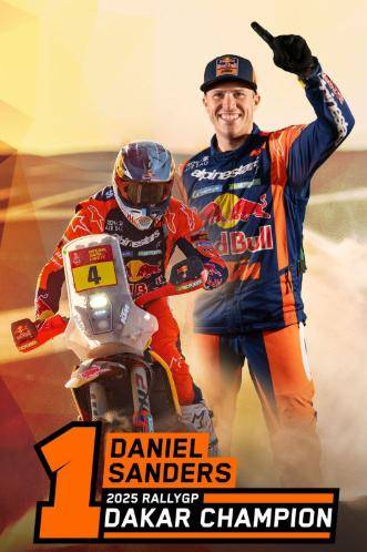 在比賽的后半段,桑德斯逐漸拉開了與競(jìng)爭(zhēng)對(duì)手的差距。他憑借著穩(wěn)定的發(fā)揮和出色的領(lǐng)航能力,成功超越了其他車手,并在多個(gè)賽段中保持了領(lǐng)先地位,并最終奪冠。丹尼爾·桑德斯在賽后采訪中表示,“當(dāng)我從沙丘中駛出……我能看到營地,那一刻,我全身瞬間起了雞皮疙瘩,緊張至極。我簡(jiǎn)直不敢相信。所有的情緒開始涌上心頭,我看到了終點(diǎn)線。這是世界上規(guī)模最大、最具挑戰(zhàn)性的摩托車與越野賽事。我贏得了六日國際耐力賽,現(xiàn)在又拿下了達(dá)喀爾拉力賽,我的職業(yè)生涯中的所有目標(biāo),以及我一直想要實(shí)現(xiàn)的一切,都已經(jīng)達(dá)成,這是一項(xiàng)巨大的成就。對(duì)于車隊(duì)、我的家人、朋友、女友,以及所有見證了我一路走來的起伏經(jīng)歷的人來說,這一切終于有了回報(bào)。他們一直相信我能做到,即便在過去三年里經(jīng)歷了許多低谷,但現(xiàn)在我們迎來了勝利,所有的努力都得到了回報(bào)。”
