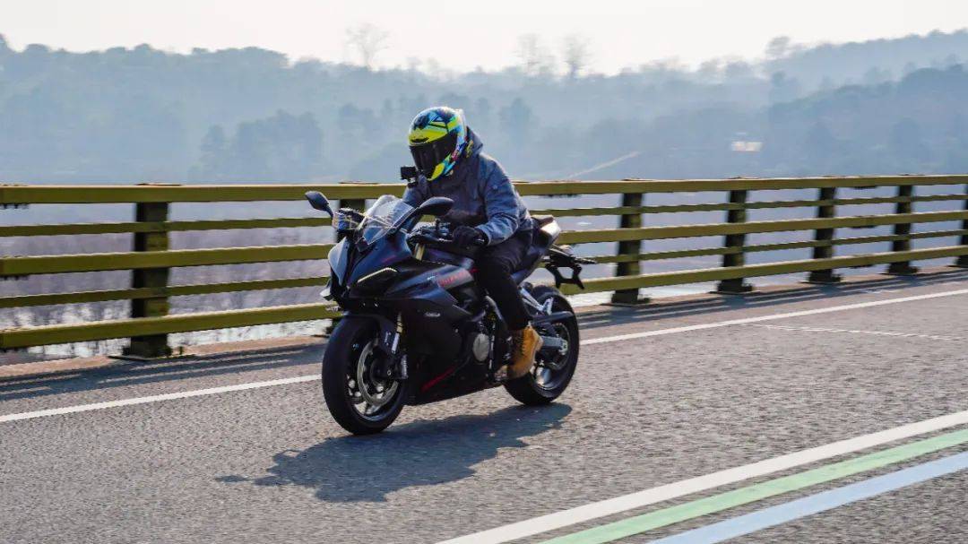 震動方面仍然是四缸引擎的特性,引擎在6500rpm-8000rpm之間存在一個共振區(qū),導(dǎo)致油箱兩側(cè)雙腿夾持部分震感明顯,而坐墊、手把以及腳踏位置則沒有明顯的震感,8000rpm-1200rpm極限狀態(tài)下,震感會明顯減小。總體而言震動抑制還是不錯的,畢竟最常用轉(zhuǎn)速區(qū)域6500以下,震動抑制很好,日常使用感受良好,七八千轉(zhuǎn)有一些震感也算正常,這個轉(zhuǎn)速對應(yīng)速度都在120-150左右了,用到的很少。我們也特意體驗了賽600rs的單向快排,在123檔4000rpm低速的狀態(tài)下升檔,仍然會存在一定的頓挫感,比正常捏離合換檔略大一點,但456檔的升檔感受明顯更好,基本感受不到頓挫感,在高速狀態(tài)下,4檔130km/左右進行連續(xù)快速升檔,車輛表現(xiàn)依然出色,相當(dāng)順暢,沒有絲毫的卡滯感,可以說這套快速升檔更貼合運動狀態(tài)下行駛。