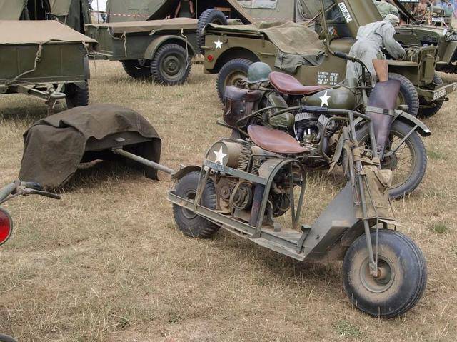 二戰(zhàn)期間,無敵公司為盟軍提供了近8萬輛軍用摩托車。1940年,隨著希特勒“閃電戰(zhàn)術(shù)”在歐洲頻頻得手,凱旋廠遭到轟炸,直至二戰(zhàn)中期才恢復(fù)生產(chǎn)能力,盡管如此,該廠仍為盟軍提供了近4萬輛頗具戰(zhàn)斗力的軍用摩托車。除此之外,英軍還曾研制出裝備傘兵空降軍用摩托車,譬如享有“飛行跳蚤”之稱的RoyalEnfield輕型軍用摩托車。