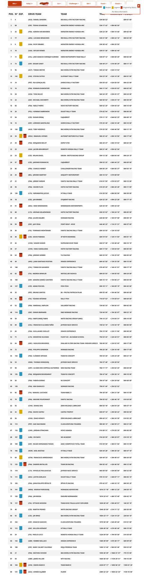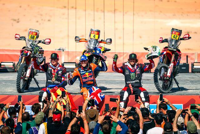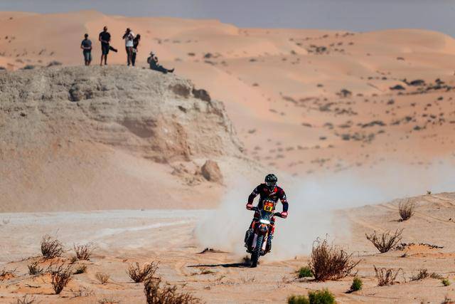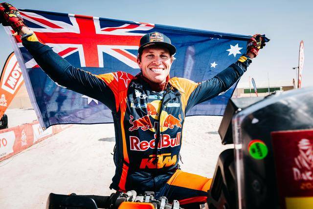 駕駛 4 號車的澳大利亞車手桑德斯(Daniel Sanders),在贏得了第一個特殊賽段的第一名之后,就一直在總時間榜上處于領先的位置上,并始終以快速的狂飆、力壓一眾的追趕者。最終,他在全程領先、并拿下五個特殊賽段第一名的出色表現,以領先第二名接近 9 分鐘的優(yōu)勢、奪得個人的首次達喀爾冠軍。桑德斯的獲勝,讓 KTM在達喀爾拉力賽摩托車組的冠軍紀錄上升到第二十二次,且在 KTM 當前境況下,這個冠軍顯得具有更加重要的意義。