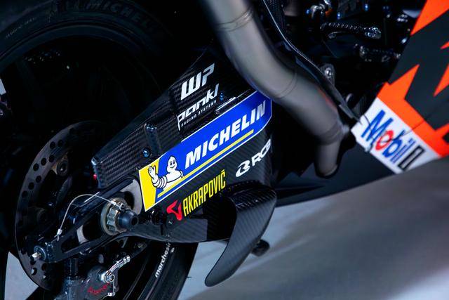 KTM RC16 搭載一副 V 型四氣缸、DOHC每汽缸四汽閥的發(fā)動(dòng)機(jī),缸徑、行程為 81 mm x 48.5 mm(FIM 的賽事規(guī)則,MotoGP 級(jí)別賽車(chē)的最大缸徑為 81 mm),官方公布的最大馬力輸出為超過(guò)了 260 匹。車(chē)體方面,采用一副混合結(jié)構(gòu)的車(chē)架(最初的 2016 - 2019 RC16 采用鋼管編織式的車(chē)架),WP 的懸掛系統(tǒng),Brembo布雷博的制動(dòng)系統(tǒng)。而持續(xù)獲得更新的空氣動(dòng)力學(xué)套件,無(wú)疑是每一個(gè)新賽季里、RC16 工廠賽車(chē)在外部較為顯著的變化之處。