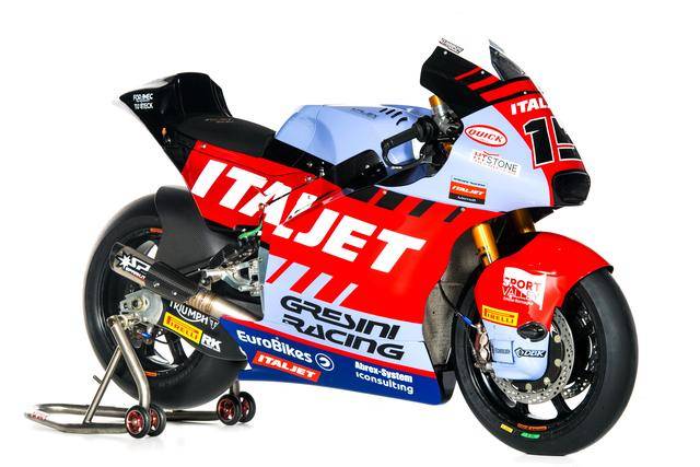 Moto2 級別,吉斯尼車隊今年的合作對象轉為 Italjet 意特捷(也稱之為意塔杰特),并有一個新的車手組合:駕駛 75 號車的西班牙車手阿里納斯(Albert Arenas)繼續(xù)為車隊效力,他是 2020 賽季 Moto3 級別的世界冠軍(車手年度積分總冠軍,下同);他的新隊友是 15 號車、來自南非的 D. 賓達(Darryn Binder)。