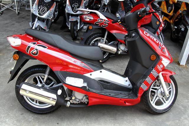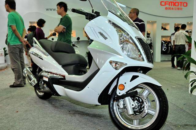 6、到 2008 年前后,除了已有的踏板產(chǎn)品之外,焦點(diǎn)新品是配備了水冷發(fā)動(dòng)機(jī)、前后碟式剎車的 CF150T-6;