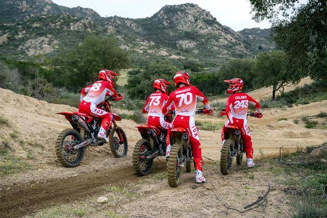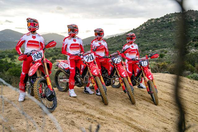 延續(xù)著去年的規(guī)模,HRC 工廠車隊(duì)將參加 MXGP(搭載四沖程單氣缸、排氣量 450 cc 以下發(fā)動(dòng)機(jī)的賽車)和 MX2(搭載四沖程單氣缸、排氣量 250 cc 以下發(fā)動(dòng)機(jī)的賽車)兩個(gè)級(jí)別的較量。MXGP級(jí)別,車隊(duì)沿用了去年的車手組合:243 號(hào)車、有著五屆世界冠軍(車手年度積分總冠軍,下同)頭銜的斯洛文尼亞車手蓋沙(Tim Gajser),和 70 號(hào)車、去年因傷缺席了大部分比賽的西班牙車手費(fèi)南德茲(Ruben Fernandez),而在 2023 賽季、他首次為 HRC 上陣時(shí),憑借著出色表現(xiàn)、奪得了年度第五名的佳績(jī)。
