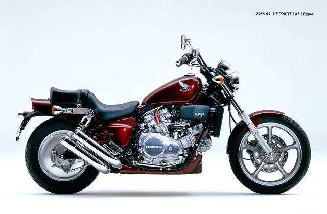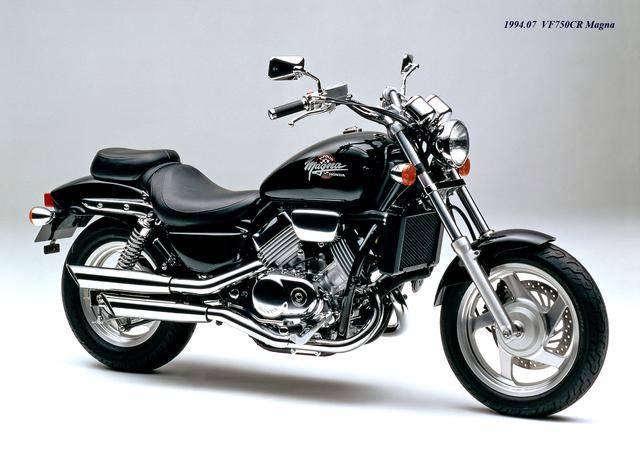4、Honda 的 V4 太子車系列是最早推出,也是最早全面停產(chǎn)的產(chǎn)品線:1982 年首批推出的 V4 車型中,就有 VF750C Magna V45;1994 年七月,日本本土市場發(fā)布了最后一次更新之后,Honda 最后一個太子車型 VF750C Magna V45(工廠編號 RC43)率先退出了本土市場;維持原貌、換了幾次車體顏色/圖案之后,該車在 2003 年面向歐美市場發(fā)布了最后更新,隨后全面停產(chǎn);
