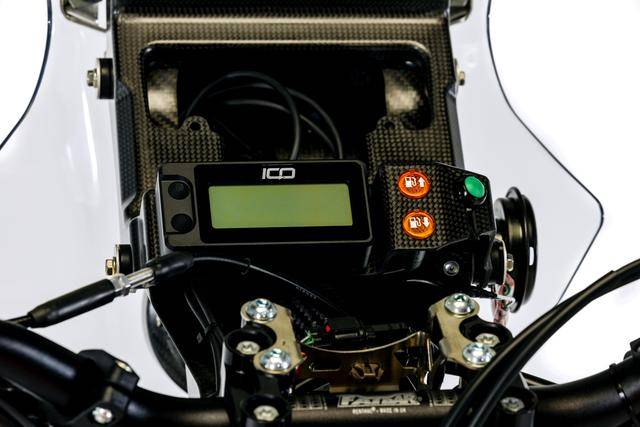 7、碳纖維制的儀表/導(dǎo)航塔臺(tái)。在設(shè)計(jì)上,由于塔臺(tái)與車輛的質(zhì)心距離最遠(yuǎn),會(huì)對(duì)車輛的敏捷性產(chǎn)生重大影響,故而采用輕量化的碳纖維材料制作,且碳纖維較好的材料綜合特性、讓其可以承受摔倒時(shí)可能遭遇的撞擊;路書架的傾斜度可以手動(dòng)調(diào)整,讓車手可以找到適合自己查看的設(shè)置;