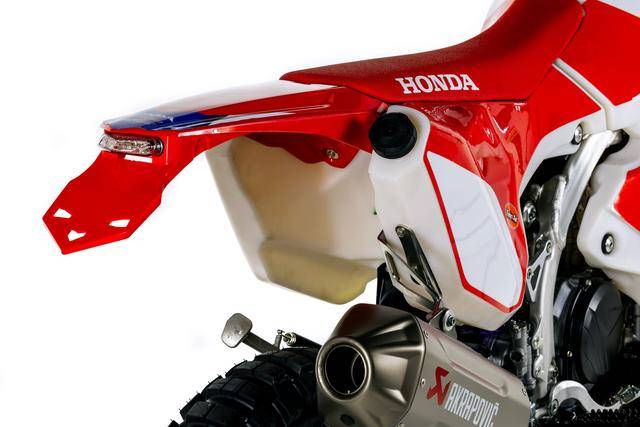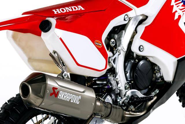 3、與 HRC CRF450Rally 工廠賽車同規(guī)格的 Akrapovic 阿克拉波維奇消聲器。而排氣管則是由 HRC 經(jīng)過(guò)重新開發(fā)、匹配而成;
