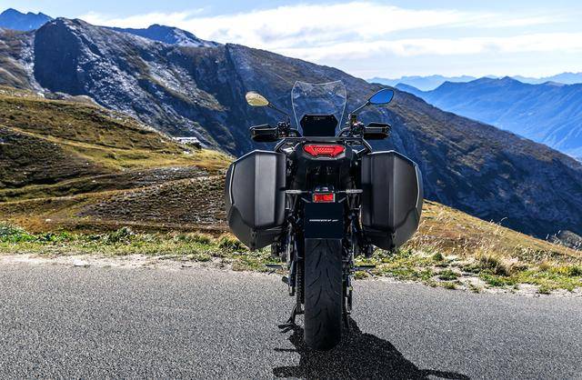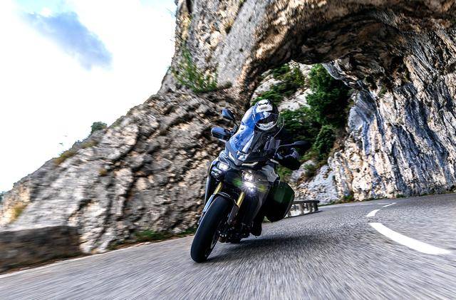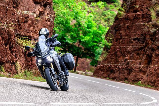* 帶有兩個(gè)后側(cè)邊箱,采用手動(dòng)六檔變速齒輪箱的 Tracer 9 GT,工廠型號(hào)為 MT09ATRDX;