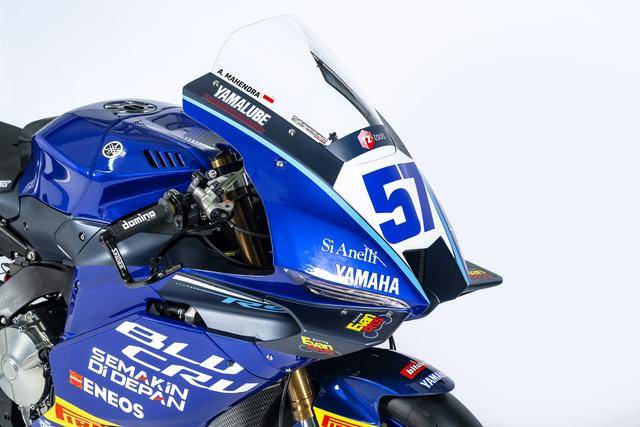 作為三支獲得 Yamaha 提供技術(shù)支援的車隊(duì)之一,Evan Bros 車隊(duì)(新賽季的車隊(duì)名為 Yamaha BLU CRU Evan Bros WorldSSP supported team)在今年終于能夠以兩位正式車手(此前兩個(gè)賽季都是只有一位車手)登場(chǎng):駕駛 57 號(hào)車、應(yīng)屆 WorldSSP300 世界冠軍、來(lái)自印尼的馬亨德拉(Aldi Satya Mahendra),以及駕駛 61 號(hào)車、來(lái)自土耳其的昂庫(kù)(Can Oncu)。