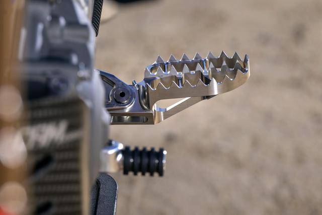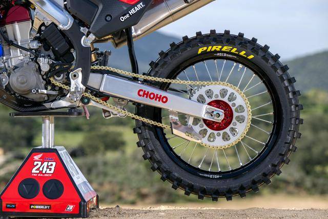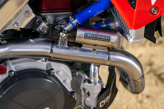 世界越野錦標(biāo)賽是 Honda 在近年來主要的、有著奪冠希望的競賽項目之一,其 CRF450RW 工廠賽車與 AMA 的版本相近,發(fā)動機的內(nèi)部,是 HRC 特制的、工廠賽車規(guī)格的配氣結(jié)構(gòu)組件(氣缸蓋、凸輪軸、強化的氣閥和氣閥彈簧等),經(jīng)過精細(xì)化調(diào)校的發(fā)動機管理系統(tǒng)(電子燃油噴注),換裝了高流量的 Twin Air 空氣濾芯,Hinson 的強化離合器,Yoshimura 吉村美國公司專門開發(fā)的賽車排氣系統(tǒng),Showa 的賽車懸掛,Nissin 日信特制的 CNC 前剎車卡鉗,追求進一步輕量化的鈦合金制腳踏、車體螺栓等。