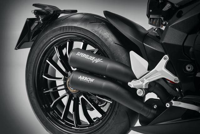除了車輛本體之外,廠方同時(shí)推出了適用于 2025 Superveloce S Ottantesimo 限量版的專用套件,該套件包括能夠?qū)⒎逯祫?dòng)力輸出提高至 153 匹馬力的 Arrow 排氣系統(tǒng),以及一個(gè)乘客鞍座外蓋。