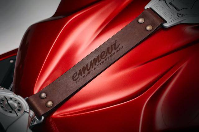 六個(gè)車型均各限量生產(chǎn) 500 輛。作為限量版的紀(jì)念車型,六個(gè)車型的上三星(上前叉三角臺(tái))都有激光打刻的 emmevi OTTANTESIMO 字樣和每輛車的紀(jì)念編號(hào),emmevi 是 MV 的意大利語(yǔ)拼音,而 Ottantesimo 意大利語(yǔ) “ 八十 ” 的意思。