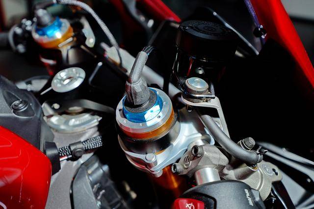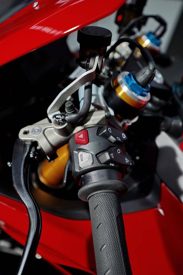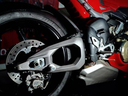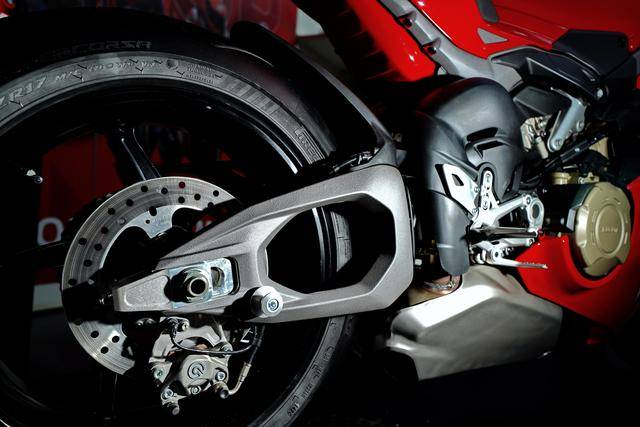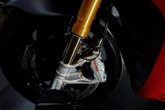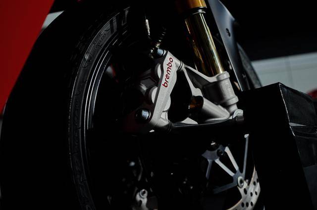 新車有多個標志性的亮點:全新的外觀,是一個將空氣動力學元素與流線的風格、集成到車輛的整體造型上的設計,而非像 MotoGP 工廠賽車那樣、為了追求最徹底的性能,讓空氣動力學組件破壞了車輛在外觀上的線條;此外,新的雙面式后搖臂取代了原本的后單搖臂,來自 MotoGP 的、更先進的電子輔助控制系統(tǒng),首次被配備到量產(chǎn)車型上的布雷博 Hypure TM 前制動卡鉗等,也是新車的焦點所在。
