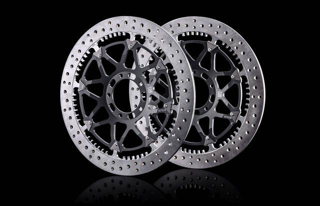 碳纖 Pro 套件是在包括了碳纖套件的基礎上,額外增加了名為前剎車 Pro(Front Brake Pro)的組件:該組件的標志性裝備,是與 WorldSBK 工廠賽車同規(guī)格的、布雷博的兩片 T-Drive 前剎車碟(左和右)。T-Drive 前剎車碟的直徑為 338.5 mm(S 版原廠剎車碟的直徑為 330 mm),厚度為 6.2 mm,碟的中間帶散熱坑槽,與標配的 HypureTM 卡鉗結合使用,可提高制動功率和制動性能的一致性。此外,還有與 WorldSBK 和 MotoGP 賽車同級的 MCS 19.21 前制動上泵。