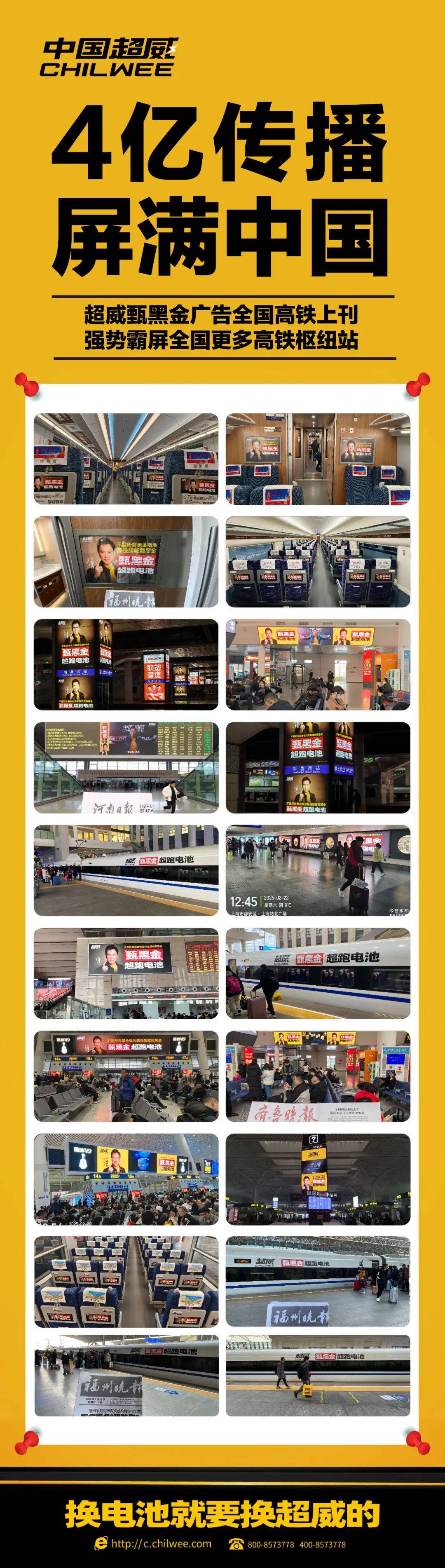 近日,超威甄黑金系列廣告全國(guó)高鐵上刊,強(qiáng)勢(shì)霸屏全國(guó)更多高鐵樞紐站點(diǎn),以“4億傳播量級(jí)“、“屏滿中國(guó)”之勢(shì),向億萬(wàn)旅客傳遞超威科技與品質(zhì)的硬核實(shí)力!