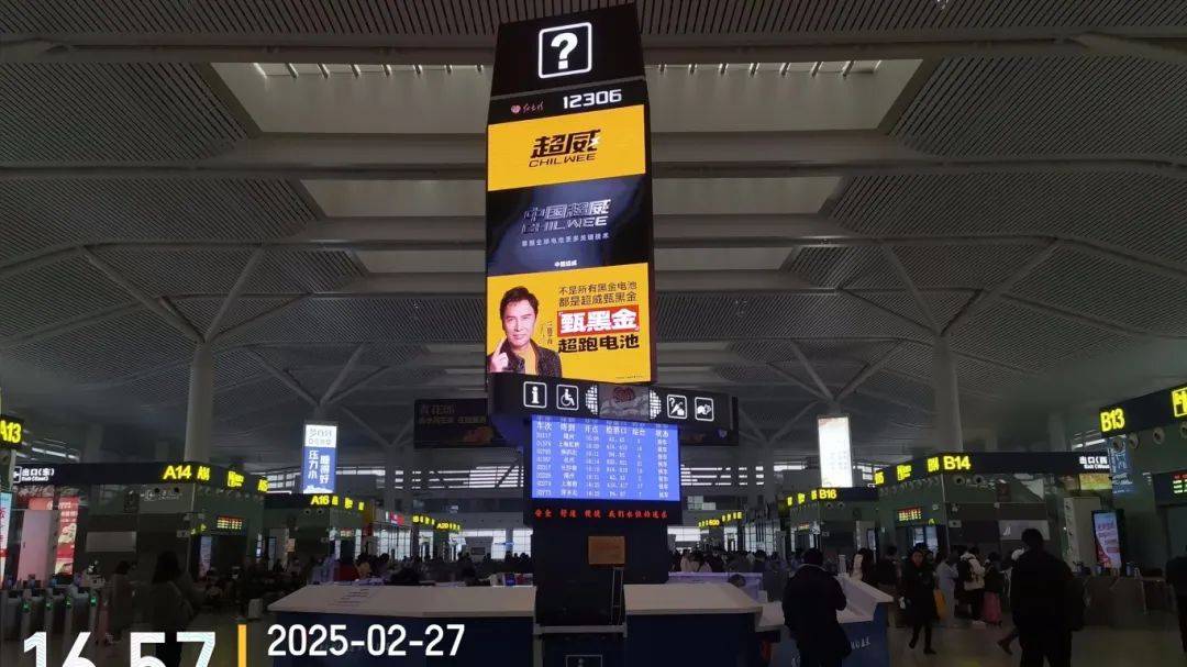 此次超威甄黑金系列廣告覆蓋北京南站、廣州南站、上海虹橋站、南京南站、杭州東站、合肥南站、鄭州東站等全國(guó)多個(gè)核心樞紐站點(diǎn),全面霸屏高鐵外車身、車內(nèi)海報(bào)、小桌板、行李架、候車廳、安檢通道、出站口等黃金點(diǎn)位,形成“進(jìn)站-候車-乘車-出站”全場(chǎng)景沉浸式觸達(dá)!