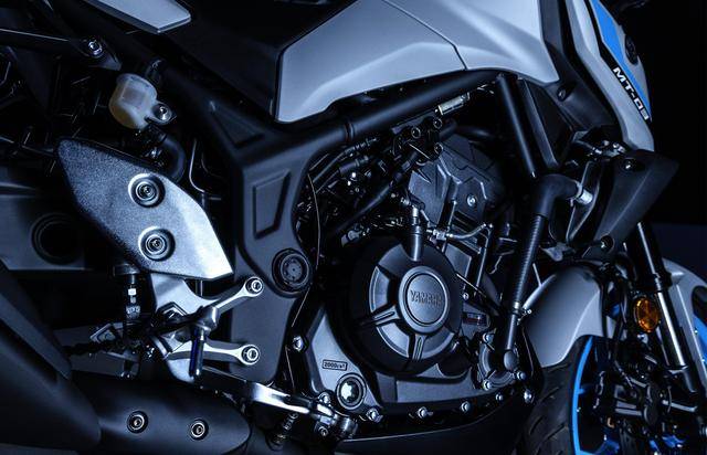 2025 MT-03 搭載一副與 MT-26 同型式的直列兩氣缸發(fā)動機,具有更大的缸徑、相同的行程(MT-03 的缸徑、行程為 68 mm x 44.1 mm),排氣量擴大至 321 cc,最大動力輸出 31 kw(約 42 匹。國內(nèi)銷售的版本為 30.4 kw),變速比與 MT-25 略有不同的六檔變速齒輪箱。