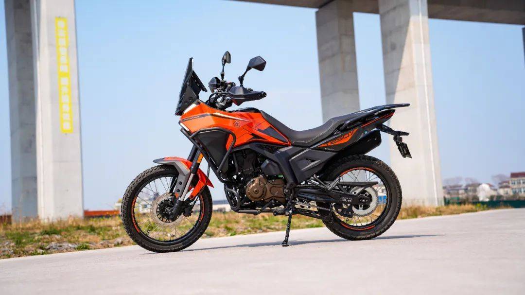 外觀設(shè)計(jì)由凱威歐洲設(shè)計(jì)團(tuán)隊(duì)操刀,非常經(jīng)典的硬派拉力風(fēng)格,給人以超脫排量的力量感,配合鉆石立體車頭, 6.75寸TFT超大屏儀表,車身自帶熏黑風(fēng)擋,寬大硬質(zhì)護(hù)手,標(biāo)配底盤護(hù)板以及護(hù)杠,足夠硬核,讓整臺(tái)車的硬派屬性更出色,尤其是今天拿到的這臺(tái)橙色穿越版,更具拉力范兒。