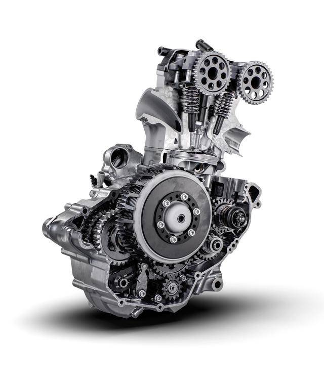 三個(gè)品牌在兩個(gè)級(jí)別里的廠隊(duì)版車型,均來自與基本版相同的兩個(gè)動(dòng)力平臺(tái):對(duì)應(yīng) MX2 規(guī)格的動(dòng)力平臺(tái),是水冷四沖程單氣缸、DOHC 四氣閥的發(fā)動(dòng)機(jī),缸徑、行程為 81 mm x 48.5 mm ,排氣量 249.9 cc,最大動(dòng)力輸出估計(jì)約為 47 匹(非官方正式數(shù)字);而對(duì)應(yīng) MXGP 規(guī)格的機(jī)器,是四沖程單氣缸、SOHC 四氣閥的發(fā)動(dòng)機(jī),缸徑、行程為 95 mm x 63.4 mm ,排氣量 449.9 cc,最大動(dòng)力輸出估計(jì)約為 63 匹(非官方正式數(shù)字)。
