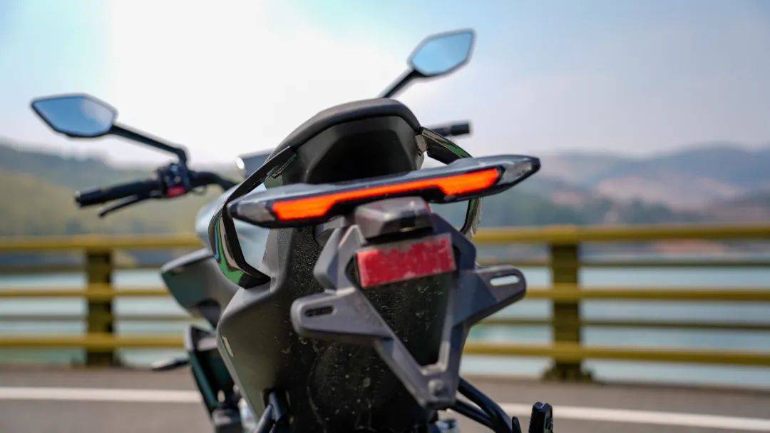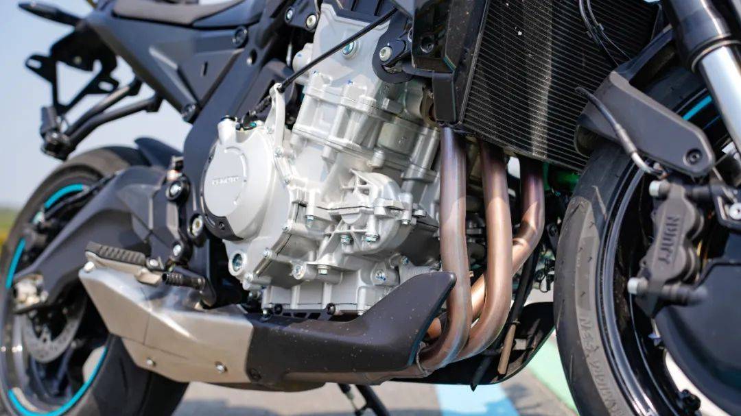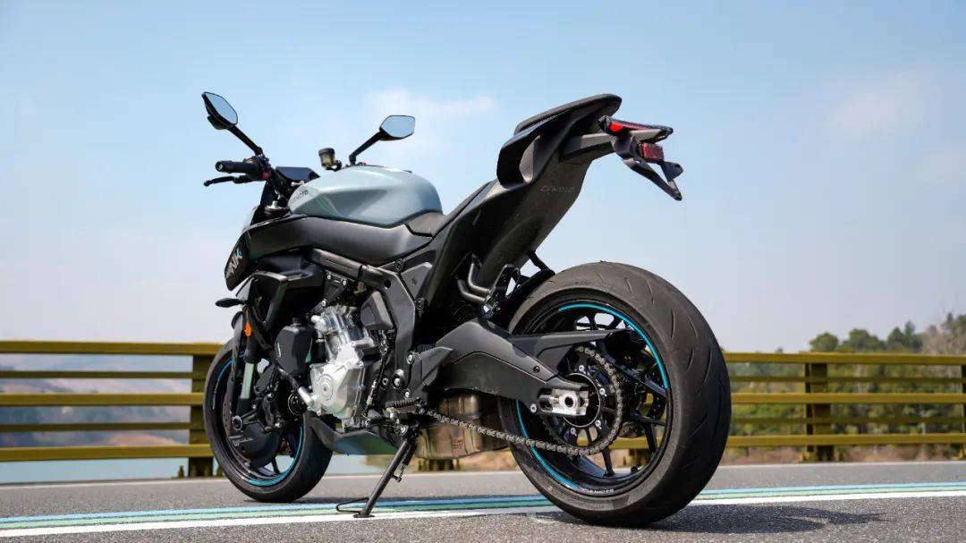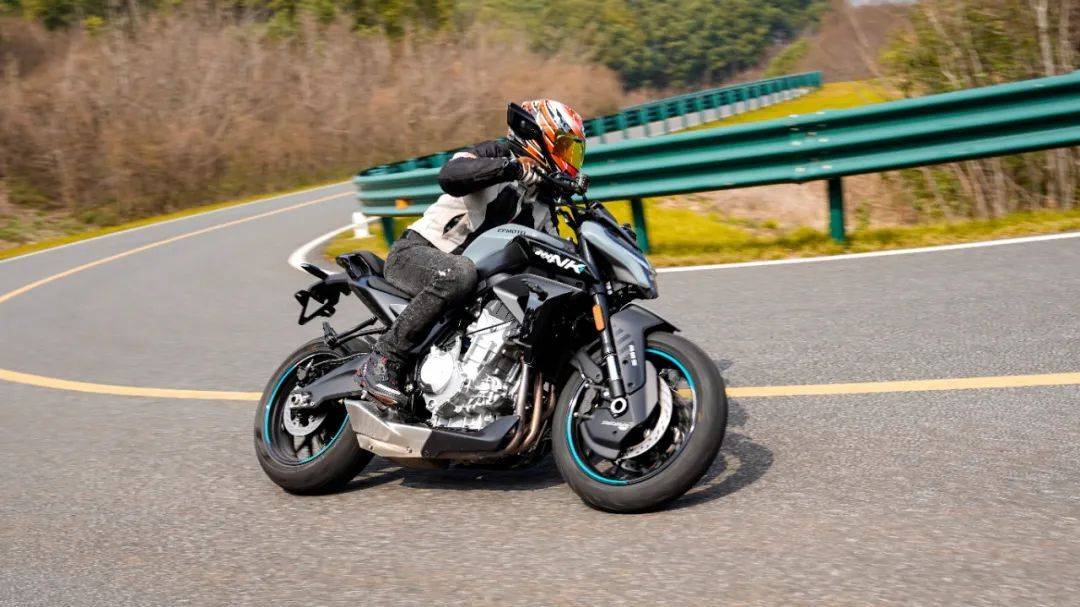 坐姿偏激進(jìn),但舒適度依然有保障,比仿賽要舒適得多,同時(shí)膝蓋夾持感和防滑性良好,而且夾持區(qū)域采用海綿軟包,天然形成人車合一的駕駛姿態(tài)。動(dòng)力來自春風(fēng)最新研發(fā)平臺(tái),直列三缸水冷引擎,實(shí)際排量為 674cc,最大馬力95.2 匹,最大功率 70kW/11000rpm,最大扭矩 70Nm/8250rpm,三缸機(jī)型獨(dú)有的輸出特性,讓這臺(tái)車的可玩性直線增加,配合僅189公斤的極致輕量化,帶來0.37的優(yōu)異推重比,可以實(shí)現(xiàn)零百3秒級(jí)的加速;同時(shí),快速升擋+滑動(dòng)離合完美配合,起步絲滑順暢,屬于目前國內(nèi)快排水平的一流表現(xiàn)。作為街車的675NK,完美繼承了675SR仿賽車型上那套完美的50:50重心布局,配合整車1400mm的極短軸距,相較于同級(jí)別的進(jìn)口車型的軸距,也處于領(lǐng)先段位,帶來非常靈活的操控,配合32度的轉(zhuǎn)向角可以在街道中輕松單車道掉頭,完全沒有大排量機(jī)車的笨拙感,運(yùn)動(dòng)街車的魅力顯露無遺。
