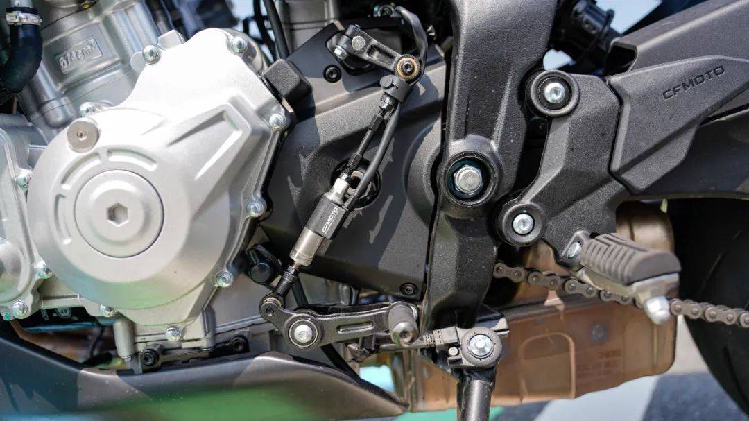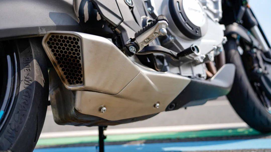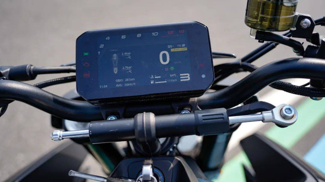 儀表依然是自家成熟的 5 英寸曲面屏 TFT 全彩液晶儀表,功能配置與 675SR一致,支持APP智能互聯(lián)、導(dǎo)航投屏等操作,儀表的UI設(shè)計(jì)經(jīng)過不斷升級(jí),顯示車輛的各項(xiàng)參數(shù)清晰,直觀,陽光下依然清楚,這塊兒儀表已然是國內(nèi)為數(shù)不多的三好學(xué)生,刷新率,分辨率好評(píng)。儀表下方設(shè)置了鈦尺,共有24段的阻尼設(shè)定,可以根據(jù)自己的需求進(jìn)行調(diào)整。手把按鍵與儀表一起,已經(jīng)形成了獨(dú)特的春風(fēng)特色,按壓質(zhì)感,阻尼感受皆屬上乘水準(zhǔn),通過旋鈕進(jìn)入各項(xiàng)菜單方便快捷,同時(shí)左手把設(shè)置了的單獨(dú)的TC關(guān)閉按鈕,長按即可關(guān)閉,開啟快樂模式,也可以進(jìn)入儀表進(jìn)行TC設(shè)置,TC原廠設(shè)定了2檔介入模式,對(duì)應(yīng)后輪打滑時(shí)扭矩下降的幅度有所不同,照顧到不同路況、不同需求的車友。避震器采用前41mm倒置液壓阻尼減震及后中置阻尼減震,均由KYB提供,前全可調(diào)后預(yù)載阻尼可調(diào),偏運(yùn)動(dòng)的避震調(diào)校,讓675NK的運(yùn)動(dòng)性能得到進(jìn)一步提升,輕松拿捏各個(gè)使用場(chǎng)景。不過前減震的調(diào)節(jié)旋鈕,正好位于車把彎管的下方稍出來一點(diǎn),調(diào)節(jié)的時(shí)候就只能用長螺絲刀傾斜著插入。剎車采用西戶品牌,前雙碟配輻射式四活塞卡鉗+直推上泵,后單活塞卡鉗,值得一提的是前剎車卡鉗同樣采用散熱導(dǎo)流罩,行車時(shí)的高速氣流能極大增強(qiáng)卡鉗的冷卻效率,配合雙通道ASB和TCS,安全性上無需考慮。輪胎依然是675sr上同款,正新S3N半熱熔輪胎,前120/70-ZR17,后180/55-ZR17,采用不同密度的設(shè)計(jì)分布,提升壓彎抓地性,又能兼顧日常騎行的耐磨性。細(xì)部配置方面,排氣管采用了經(jīng)典的底部排氣造型,不僅使車輛的重心更為集中,同時(shí)也很有設(shè)計(jì)感,與整車的氣質(zhì)相融合,犀利動(dòng)感。原廠的油箱容積15L,油箱的線條設(shè)計(jì)更適合騎行時(shí)夾持,更利于操控,尾部上翹且鏤空的造型,更顯運(yùn)動(dòng)街車的型格。春風(fēng)作為國內(nèi)目前玩樂型車企的代表,一出手便是大作,675NK給進(jìn)入深冷期的街車帶來不少熱度,35980元的價(jià)格也是將性價(jià)比提升到了新高度,結(jié)合整車完美的重心比例和緊湊短軸距車身,富有魅力的三缸動(dòng)力,187公斤的極致輕量化、絲滑好用的單向快排,一流的配置水平,是否期待675NK的騎行表現(xiàn)?關(guān)注這臺(tái)車的朋友,歡迎關(guān)注本號(hào)后續(xù)動(dòng)態(tài)測(cè)評(píng),同步測(cè)評(píng)視頻將發(fā)布于摩托財(cái)智抖音、視頻號(hào)等平臺(tái)。