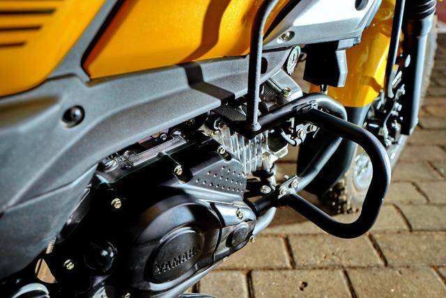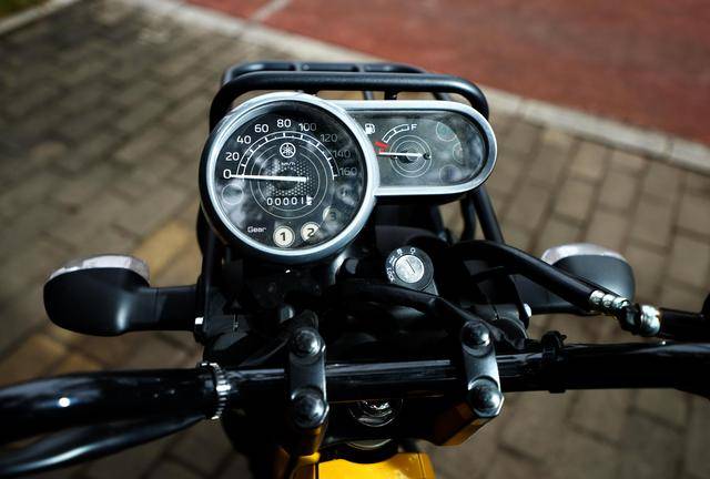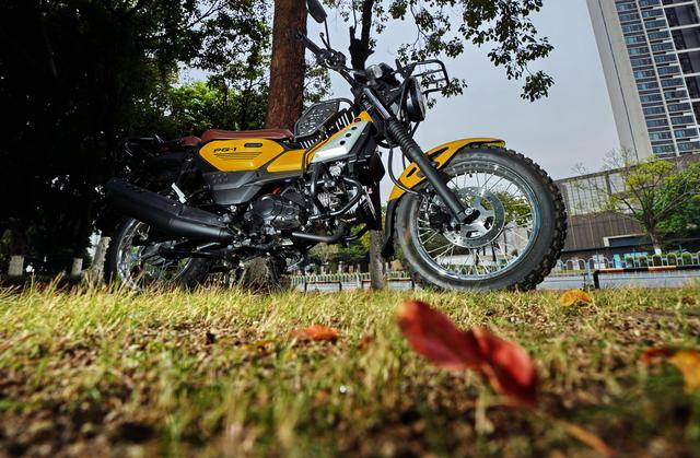 有著一個(gè)越野彎樑的跨界風(fēng)格與設(shè)計(jì)取向,是 PG-1 的焦點(diǎn)所在:輕量級(jí)越野車風(fēng)格的圓形前大燈和儀表板,標(biāo)配了越野輪胎,較高的 190 mm 離地間隙(同級(jí)主要對(duì)手的離地間隙為 163 mm。而大部分 300 cc 以下的輕量級(jí)探險(xiǎn)車,離地間隙是 200 mm 以下)、對(duì)應(yīng)著不算太高的 795 mm 鞍座高度(同級(jí)主要對(duì)手的鞍座高度為 784 mm)。