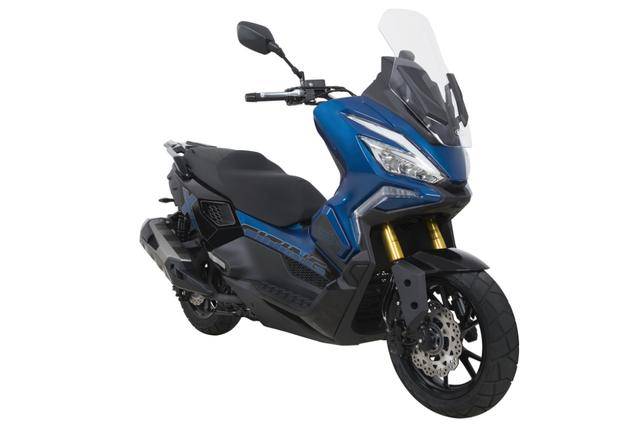 外觀方面,它的車頭部分融入“螞蚱”的仿生學造型,有著讓人無法忽視的存在感,車身線條設計借鑒了蘇格蘭Skye島上崎嶇狂野的自然景觀,使整個車身設計在ADV車型里極具辨識度,讓人記憶深刻。