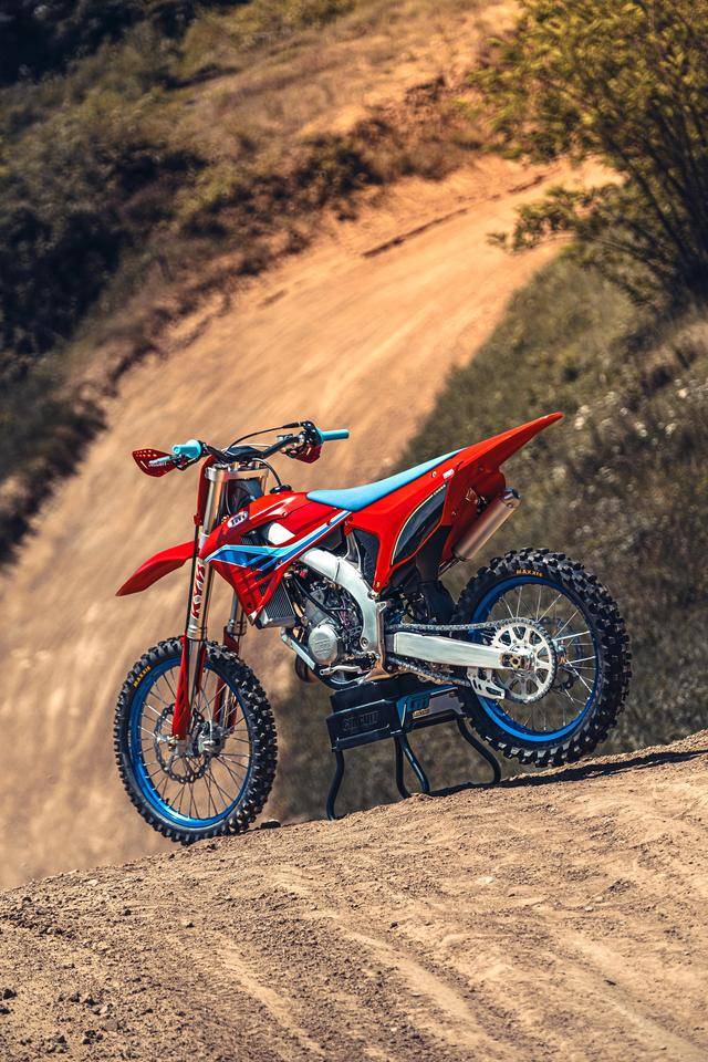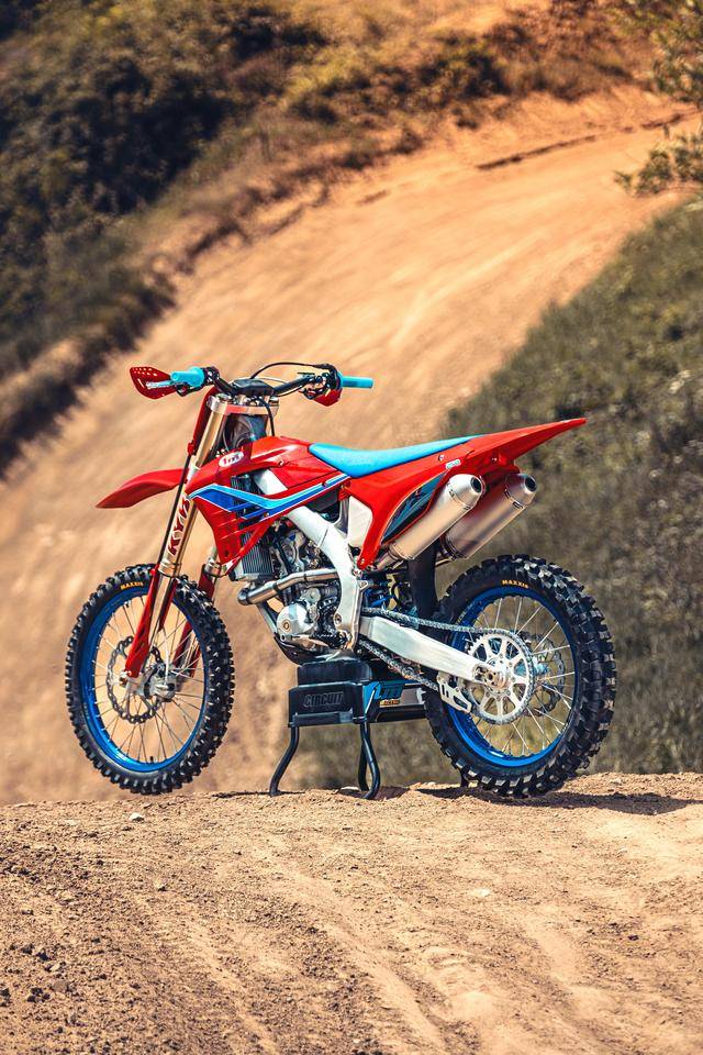 下面的圖片,搭載四沖程發(fā)動機(jī)、屬于場地越野規(guī)格的 TM MX250 ES FI 4T 夢想限量版。