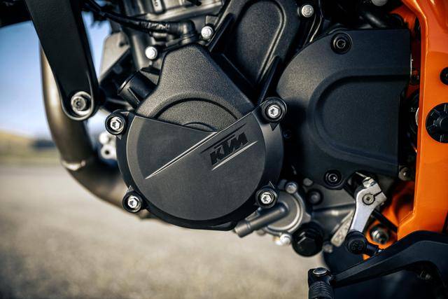 1、125 SMC R 搭載一副與新一代 125 Duke 相同的水冷四沖程單氣缸、SOHC 四氣閥的發(fā)動機,缸徑、行程為 58 mm x 47.3 mm,排氣量 124.9 cc,節(jié)氣閥口徑為 33 mm 的電子燃油噴注系統(tǒng),標(biāo)配了滑動式的離合器、六檔的變速齒輪箱,兩個版本車型的峰值動力輸出均為 11 kw(歐洲法規(guī)對 125 這一排氣量級別限定的最大動力輸出);